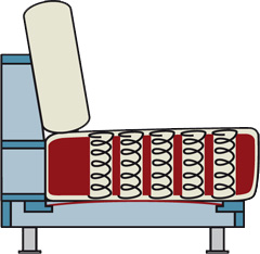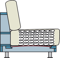 Durch variieren der Anzahl und Abstände der einzelnen Spiralfedern können unterschiedliche Sitzhärten erreicht werden.